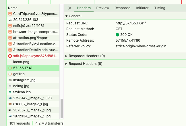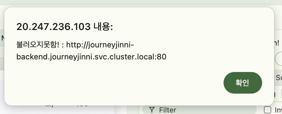 http://journeyjinni-backend.journeyjinni.svc.cluster.local:80(Axios 에러)- 57.155.17.41 (정상 호출)