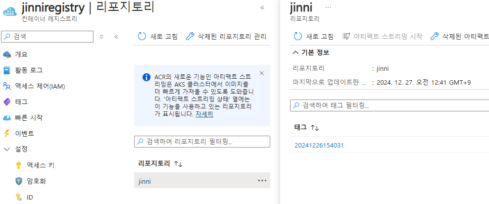적상적으로 ACR의 레포지터리에 push 됨을 확인