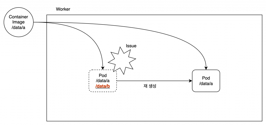 어떠한 문제로 인해 Pod가 삭제되어진다면 기존에 저장한 /data/b는 유실되게 된다.