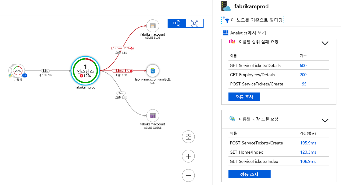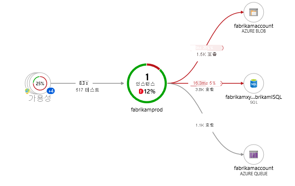 어플리케이션 맵은 병목 현상과 실패 지점을 디버깅하는데 큰 도움을 주는 시각적 지표이다. 또한 어플리케이션의 구성요소 및 종속성을 나타내어 현재 성능과 이벤트의 분석 등 자세한 진단도 가능하게 한다.