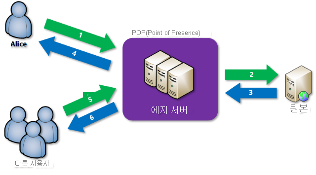 전 세계에 걸쳐 배포된 노드에 콘텐츠를 캐시하여 사용자 성능 및 사용자 환경을 향상한다. 이러한 에지 서버 방식을 사용해 원본 서버로 전송되는 트래픽의 양을 감소 시킨다. (이러한 CDN 프로필은 구독 유형에 따라 제한됨)