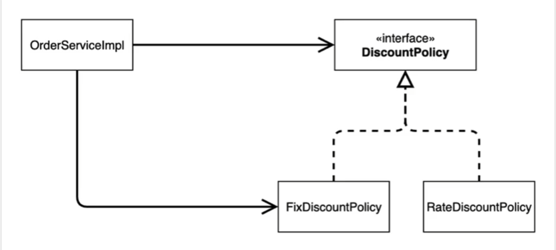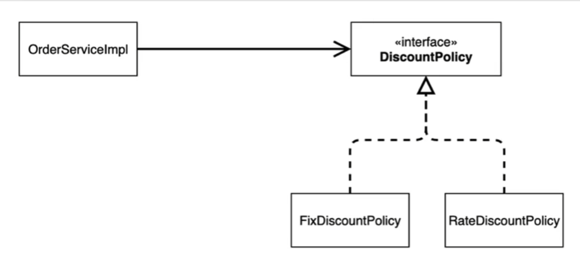 OrderServiceImpl에게도 의존 하고 있다. - 즉 할인 정책의 변경이