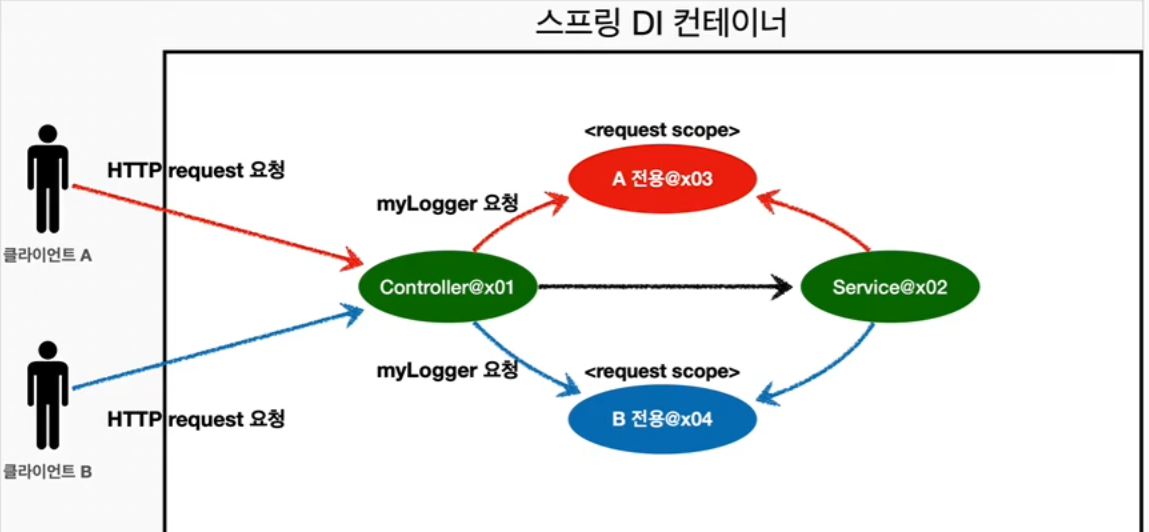 - 이거 덕분에 편리하게 request scope을 사용할 수 있다.